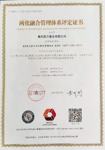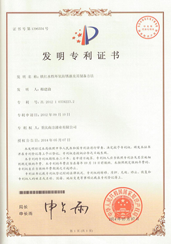 公司是重慶市“專精特新”企業(yè)、國家“專精特新”小巨人企業(yè),公司有健全、完善的管理體系,通過了ISO9001、ISO14001、ISO45001體系認(rèn)證。公司產(chǎn)品通過了鐵路鋼橋涂料產(chǎn)品及鐵路客車/貨車涂料產(chǎn)品(CRCC) 認(rèn)證,參編鐵路TB/T1527-2011《鐵路鋼橋保護(hù)涂裝和涂料供貨技術(shù)條件》行業(yè)技術(shù)標(biāo)準(zhǔn)。 公司擁有國家授權(quán)發(fā)明專利7項, 實用新型專利1項。