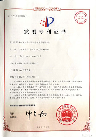 11-發(fā)明專利證書(水性帶銹防銹涂料及其制備方法)