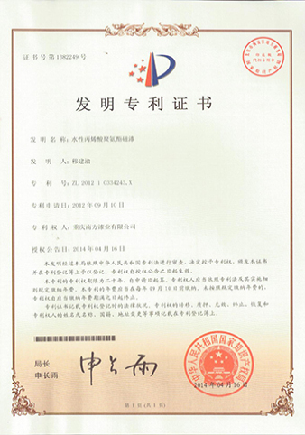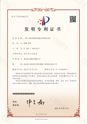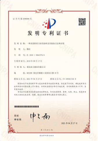 發(fā)明專利證書(一種表面附著力好的涂料及其制備方法和應(yīng)用)
